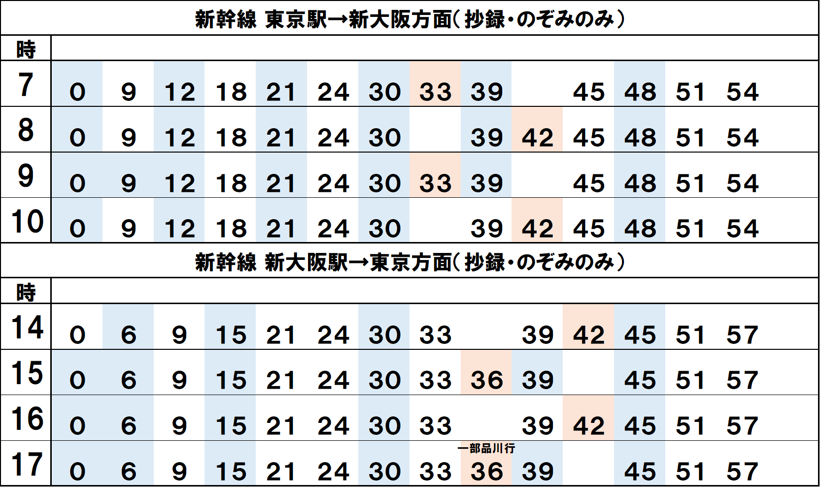 ・京都発、岐阜羽島発の始発新幹線、品川止めの最終列車など