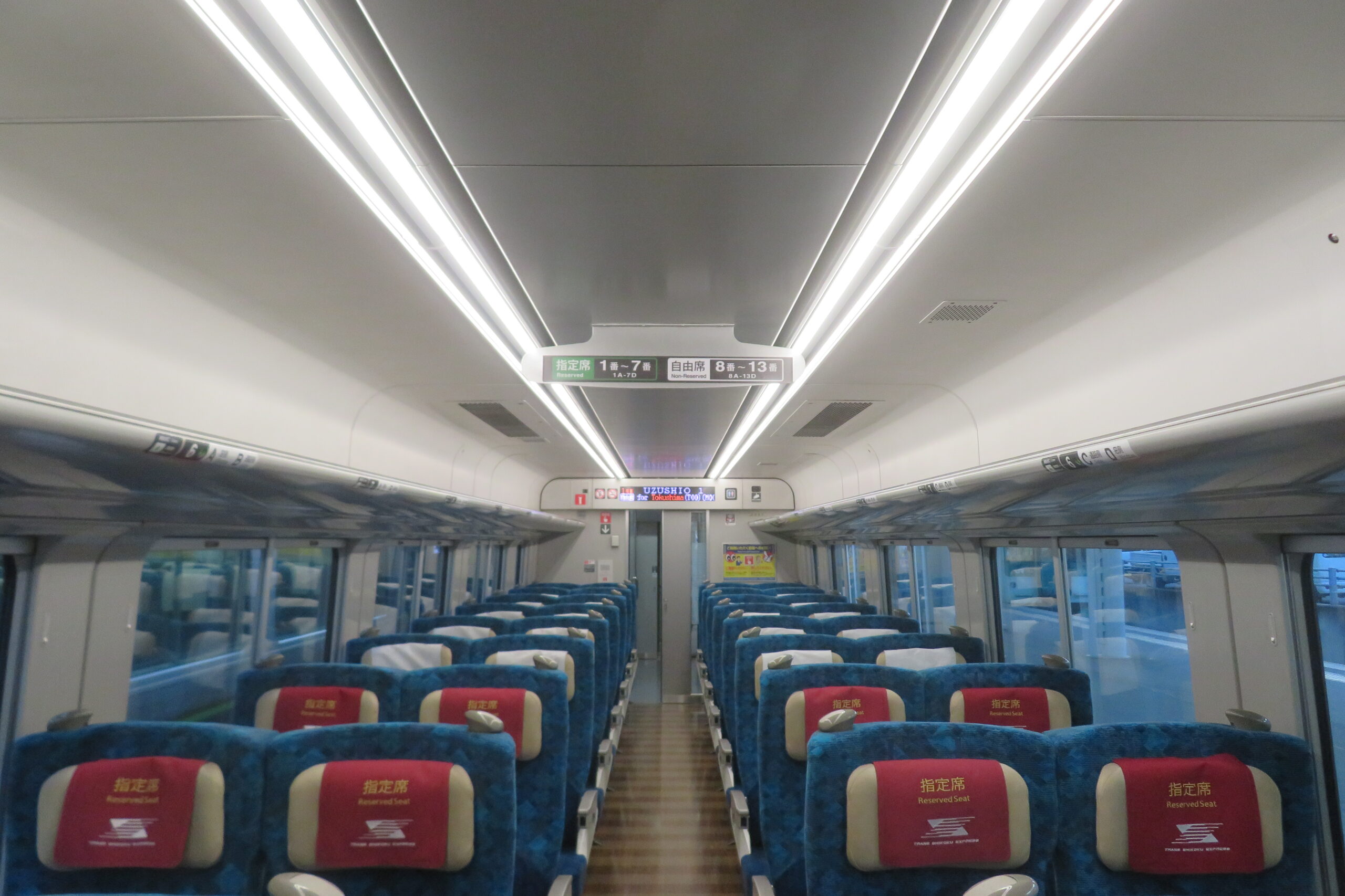 現在、特急しおかぜは4,5号車が自由席であるのを指定席に変更する。一方いしづちは6,7号車自由席、8号車指定席というのは変更がない。特急南風は3号車が自由席であるが、これを指定席に変更する。指定席が満席の場合は立席特急券(自由席と同額)を発売する。その他の取り扱いについては別途公表とのことである。